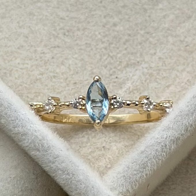 | Pedras do Anel de Noivado | Navete Águar Marinha e pedras de Moissanite |