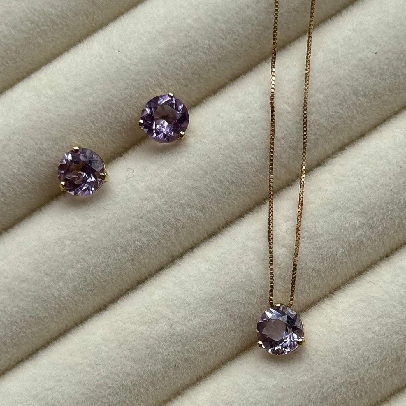 O Conjunto Ametista Essence em Ouro 18K combina elegância e serenidade em um design cuidadosamente elaborado. Composto por corrente, pingente e par de brincos, cada peça apresenta uma belíssima ametista natural — pedra reconhecida por seu tom violeta marcante e simbologia de equilíbrio. Seu brilho sofisticado, somado ao acabamento premium do ouro 18k, cria um visual leve, luxuoso e atemporal. Ideal para quem deseja uma joia que una delicadeza, presença e significado em um único conjunto.
